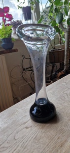 Holmegaard Fantastisk fin orkidevase med sort fod, populært kaldet benvase / knoglevase af Per Lütken for Holmegaard, 1952