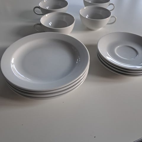 Porcelæn, Kaffestel, Pullivut, 4 stk kaffe kopper med underkopper. Mål: 8x4,5 og tallerkner 14 cm Sælges samlet.