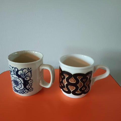 Keramik, Krus Engelsk Retro Keramik, Tre engelske retro krus. Sandsynligvis fra Tams, Staffordshire. Fremstår som nye Samlet