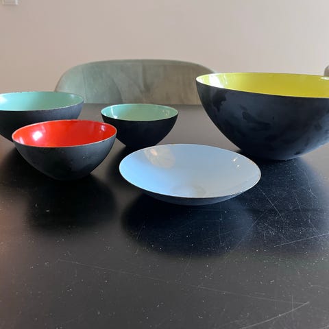 Emalje, skåle, Normann copenhagen krenit, 2 hvide skåle 12,5cm og 8,5 cm