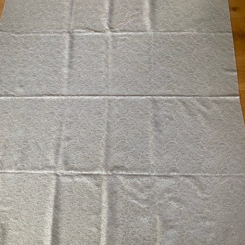 Rosenmønstret i to farver. Guld 36 x 40cm. Sølv 36 x 42cm. Let gennemsigtigt og let elastisk. Falder blødt. Vejer 60g.