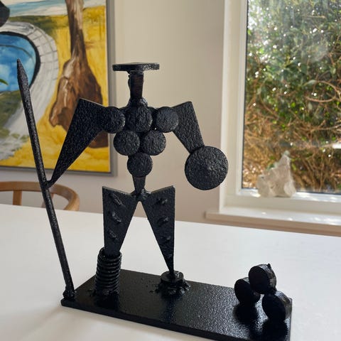 Vægskulptur, væg skulptur i mat sort malet jern, metal, l: 144 cm, h: 44 cm, d: 10 cm, i rigtig god stand, ser rigtig godt ud på hvid væg og meget dekorativ.