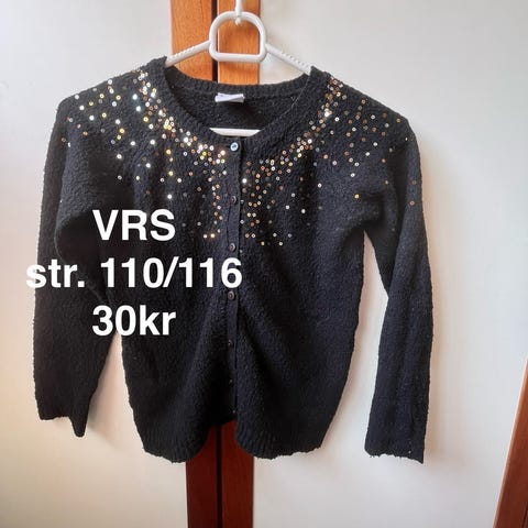 Cardigan, Strik cardigan, VRS, str. 110, Sort strik cardigan, str. 110-116/ 4-6 år.