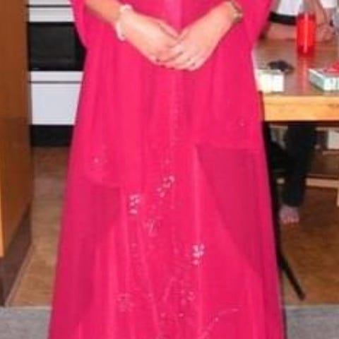 Størrelsen hedder 10, ved ikke hvad det svarer til da kjolen er købt i Tel Aviv.