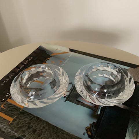 Særdeles Smuk gammel Holmegaard Cocoon fyrfadsstage på 9 x 12 cm og med stempel i bunden på Græsted-Gilleleje og 3 tårne
