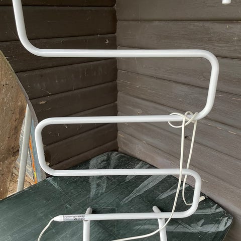 Håndklædetørrer, Appliance, AHT-35 mini-tørrer til badeværelse eller køkken o kolonihavehus, sommerhus, campingvogn eller lign. På svingarm, så den nemt kan klappes ind og ligge fladt langs væggen, når den ikke bruges.