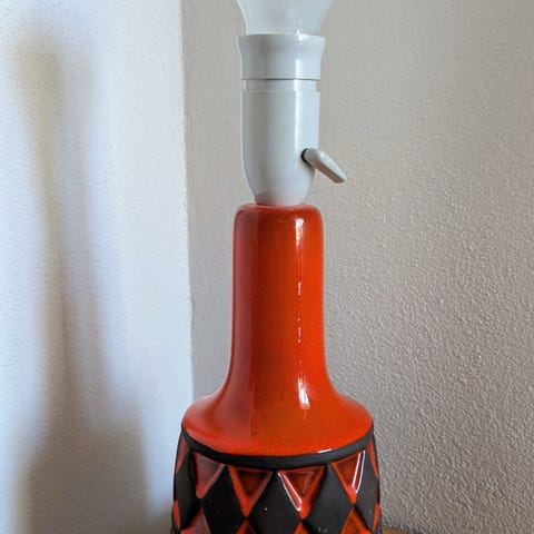 Lampe, Frank Keramik Danmark, Vintage lampe i orange/rød.