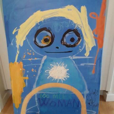 Skønt billede med masser af glæde og positiv energi. Lærredstryk inkl. sort træramme. Mål med ramme.