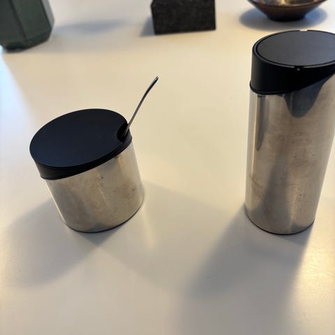 Plastik, Flødekande og sukkerskål, George Jensen, Georg Jensen flødekande og sukkerskål med bakke. Sort/grå i plastik.