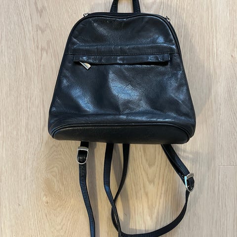 Andet, Mandarina Duck, b: 29 l: 13 h: 33, "Slidt" sort/ grå Mandarina Duck rygsæk i skind med indstillelige remme.