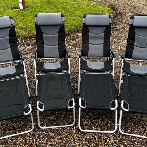 Sammenklappelig camping stol, Sprøjtelakerede letmetal stole - ryg og sæde i kraftig plast/vinyl. Nemme at klappe sammen, perfekt til camping, båd, sommerhus eller måske altanen.