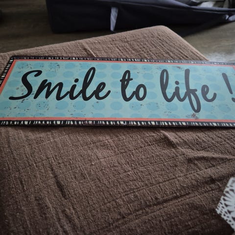 BLIKSKILT, LIFE IS WHAT YOU MAKE IT., FLOT BUET BLIKSKILT 39 X 29 CM.
