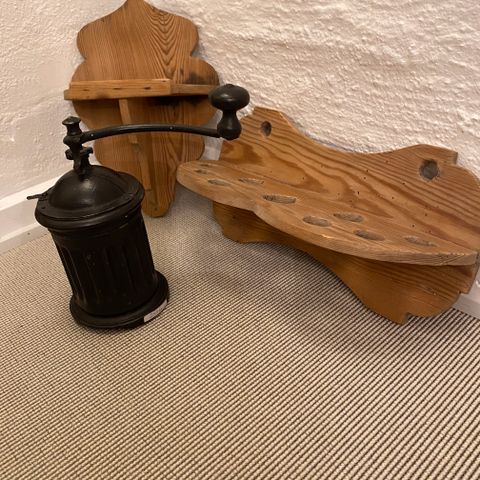 Skeholder, Sjælden og antik skeholder, slevhylde, grydeskeshylde, kært barn har mange navne, i keramik. Har almindelig brugsspor og patina. Bredde ca. 24 cm, højde ca. 17 cm. Der medfølger et nyt og ubrugt sæt brabantia grydeskeer. Sender gerne på købers regning.