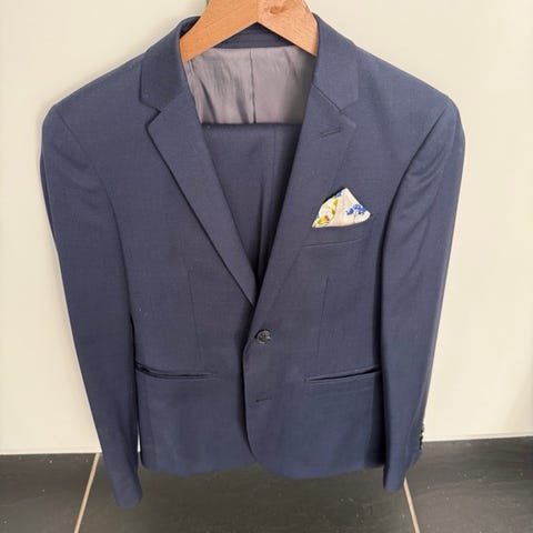 Cowboyjakke, str. 38, Fransa, Hvid, Demin, Flot konfirmationsjakke. Kun brugt én gang til en konfirmation. Nyvasket og nystrøget. Sender gerne.