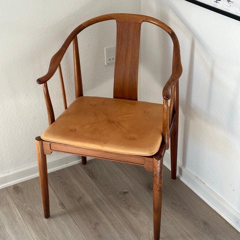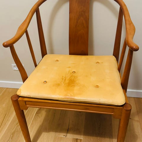 Hans J. Wegner, stol, PP66 kinastol i Sæbebehandlet ask med natur flet. Sort hynde i skind medfølger. Står super flot. Købt i oktober 2020 hos Illum Bolighus. Koster 30250,- på nettet.