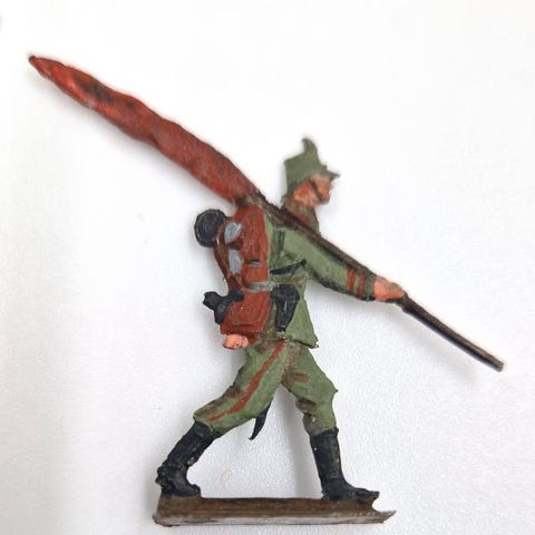 Tinfigurer, Heinrichsen, skala 28 mm, 9 stk. tyske jægere 1914. Fladfigurer fremstillet hos Heinrichsen, Nürnberg, ca. 1930.