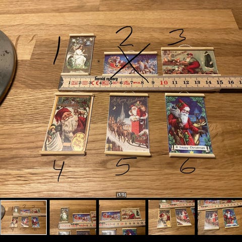 Dukkehus-møbler, Juletid, Flotte jule plakater med søde motiver som ses på billederne til dukkehuset eller nissebo sælges pris 10 kr pr stk jeg sender køber betaler fragt