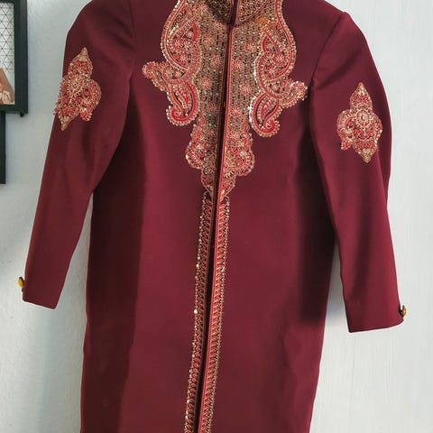 Andet, Blazer sherwani jakke, Sherwani, str. 104, Sherwani, der står 4 i den men drengen på billederne er 5 år og lidt over 110 cm høj