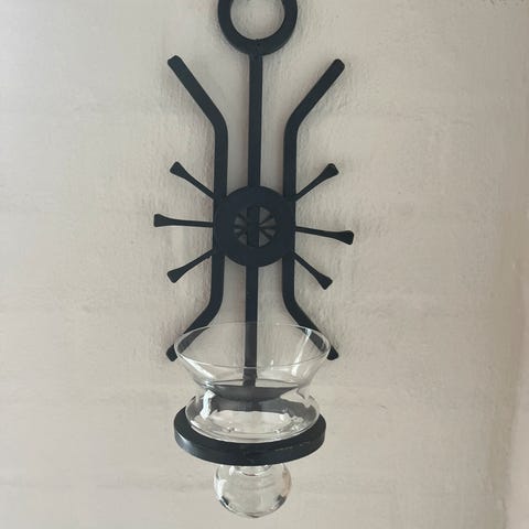 Hænge lysestage i jern og glas til 4 kronelys