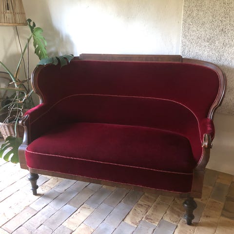 Cretonne sofa , 60 år gl., Ældre Cretonnesofa med flæser