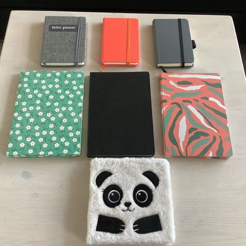 6 nye og ubrugte notesbøger, de fem i format A5 og én i 25 x 25 cm. Super fi...