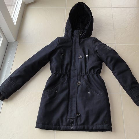 Parkacoat, str. 34, Vero Moda, Sort, God men brugt, Black winter jacket, really warm. Used but in perfect condition. Adjustable at the waist.
