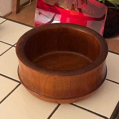 Andre samleobjekter, Stor retro teak skål (Quistgaard?), Der er her tale om en stor lækker retro teakskål med flotte detaljer. Designet ligner Jens Harald Quistgaard i 1960/70erne men er ikke stemplet, så derfor ikke afklaret.