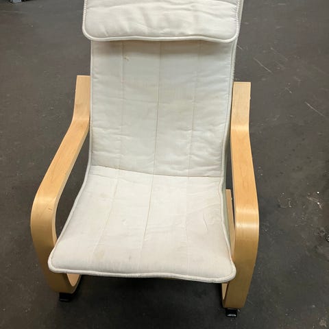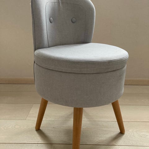 Juniorstol, Lænestol til barn, hvid og lyserød, retro design. Små brugsspor. H 48cm. B 47cm. D 48cm. Ring hvis det har interesse...