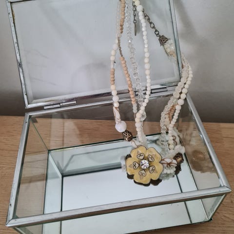 Smykker og sten, Smykkeskrin, Fine smykkeskrin i glas. Flot stand.