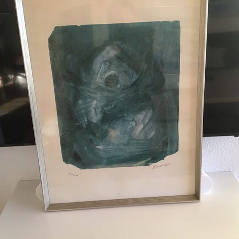 Litografi, Ida Rostgaard, motiv: Blomster, b: 50 h: 70, Litografi - blomster af Ida Rostgaard i refleksfri glas 70x50cm (HxB) i meget fin stand