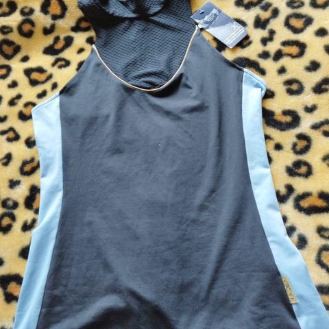 Flot satin top med fine blonde detaljer. Passer small/medium.
