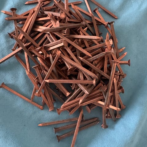 Blandede æsker kobber båd søm, samt en smule skiver.