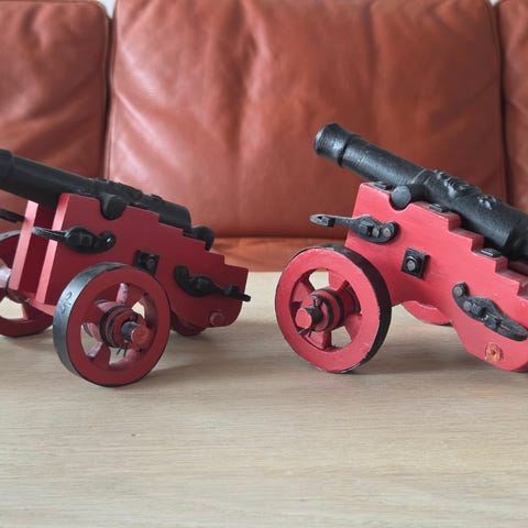 Militær, Kanonlavet., 2 stk. ikke færdiglavede kanoner. Hvem er fiks på fingrene? Der er hvad der vises. Kanonerne er i massiv messing Vægt. 650g. stk. stemplet og med en længde på 20cm. Hjul diam. 9cm. Kan fremsendes med GLS til nærmeste afhentningssted. Betaling MobilePay. Oplyst pris er eksl. fragt
