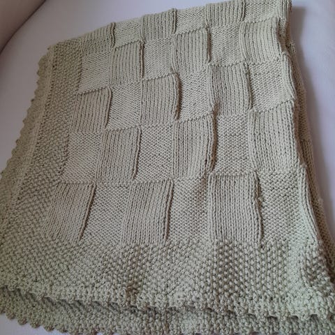 Stort skønt strikket lyseblåt tæppe på hele 1 meter x 75 cm til blot 99,-