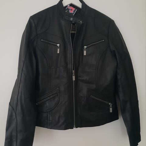 Jakke, RICHA, str. 40/42, ubrugt. En lille str. 42 som svarer til en nordisk str. 38/40. Motorcykel damejakke mærke RICHA, med bl.a. indbygget D3O® beskyttelse, model Daytona i cognac farvet buffalo læder.
