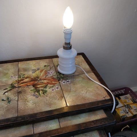 Skrivebordslampe, HOLMEGAARD LILLE APOTEKERLAMPE, FLOT HOLMEGAARD LILLE APOTEKERLAMPE.