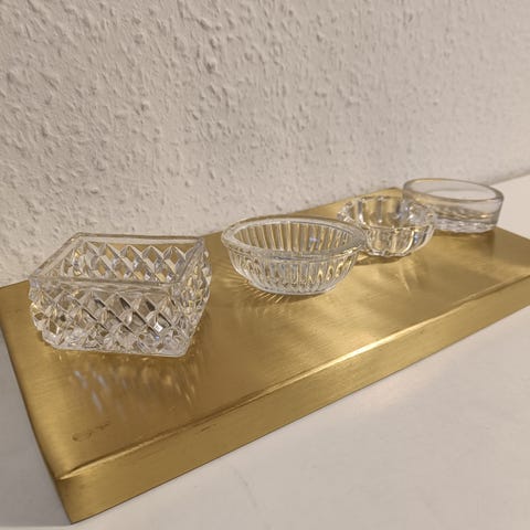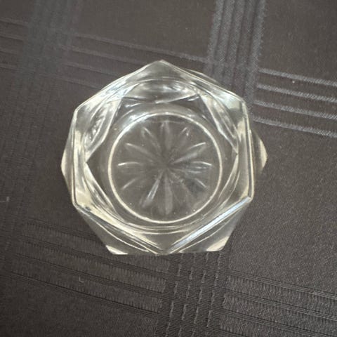 Glas, 4 saltkar presset glas, Fyns glasværk, 4 stk ens Charmerende, gamle, facetslebne saltkar i presset glas fra Fyens glasværk. Diameter 4.5 cm højde 2 cm. Fin stand. Ingen skår el revner