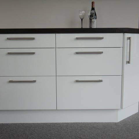 Funktioner: Aluminium bakke i bunden og grebsfrie hvide låger
