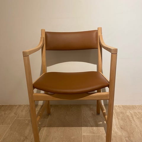 Hans J. Wegner, PP52, Armstol, Flot Wegner PP52 armstol. Kaptajnens Stol. Med sæde af læder. Lak er slidt på armlæn.