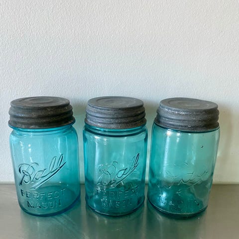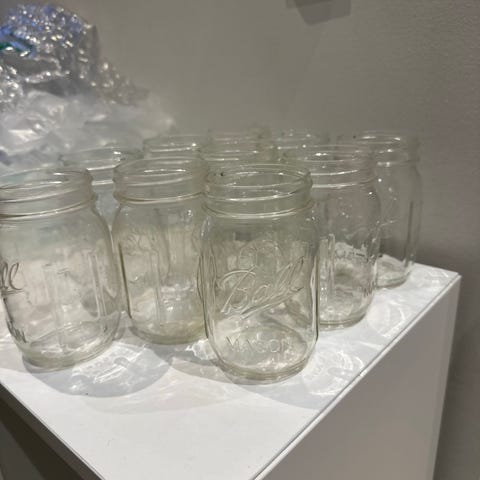 Glas, Drikkeglas med hank, Mason Jar, Mason Drikkeglas med hank og skruelåg i metal, i alt 13 stk.
