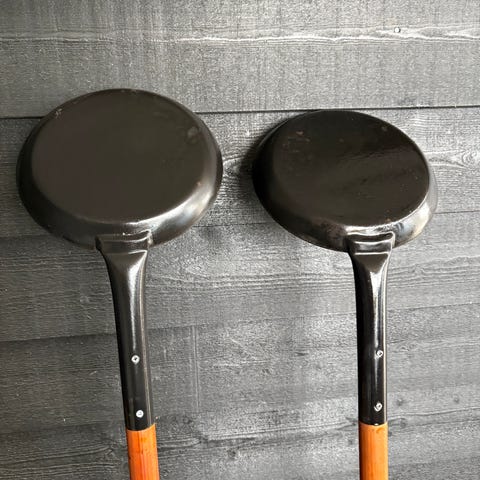 Tilbehør, Pandekager pande til bål pladsen i jern 137 cm lang og 14 cm i diameter.