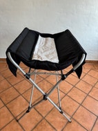 Puslebord, Stabilt sammenklappeligt puslebord. Brugt meget få gange og står som nyt. Der er lommer i begge sider af puslebordet.