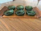 Bakke glasskåle skål, Fin teak-bakke med 6 grønne glasskåle. Alle skåle er uden skål og fejl
