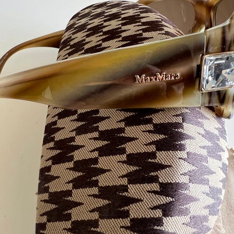 Solbriller dame, Max Mara, Elfenbensfarvede solbriller fra Max Mara. Købt men ikke båret til mit bryllup, da jeg endte i en kridhvid (og blålig) brudekjole :)