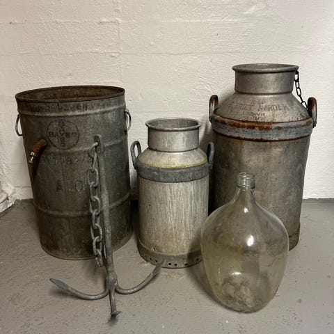 Andet, Inventar til forretning, Zink, Inventar fra nedlagt forretning, det er zink belagt. Der er et podie , en salgdisk som en måne med hylder, 3 plante/salgsvogne med 6 zinkbakker og låg, zink vaser runde og 26 stk firkantet vaser, papir ruldeholder, 2 runde borde ø 70 cm, arbejdsbord med 2 hylder 60*140