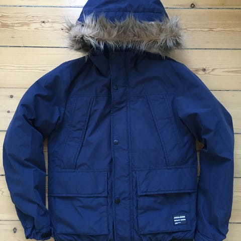 Jakke, Overgangsjakke, Jack & Jones, str. 152, Lækker overgangsjakke i mørkeblå med lommer. Den er som ny og kun brugt få gange.