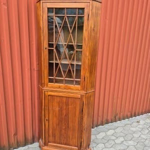 Hjørneskab m// figurer, 100 år gl.