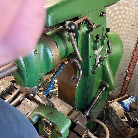Denne fræser af mærket Wadkin Burgsgreen er i ok stand og er pt. I brug på et værksted. Den kan derfor afprøves efter aftale. Der er monteret et nyt fremtræk af mærket Maggi. Se billeder for model.