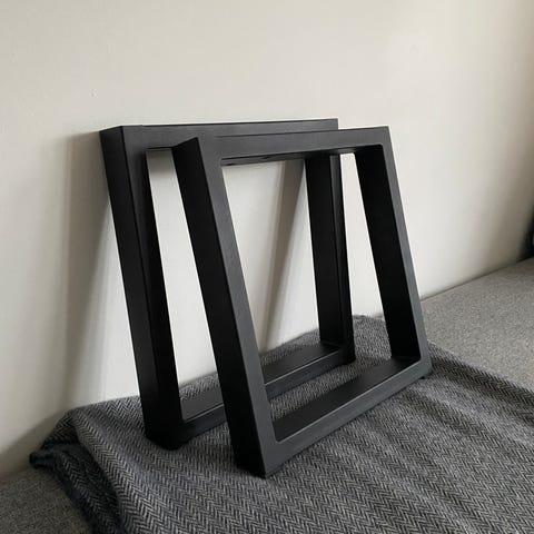 Solide og stilrene bænke-ben i formbøjet jernrør Ø7 cm, pulverlakeret og klar til montering på f.eks. MDF-plader eller massivt træ.