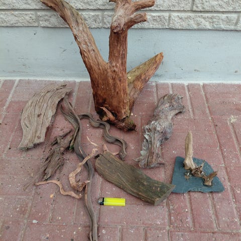 Trærødder, 180 liter, b: 43 d: 25 h: 71, Flot trærod som kan stå uden støtte som vist på billede. Mål er i denne position, men kan selvfølge ligge i vandret også. Den er speciel da den kan stå oprejst og derfor over vandspejl.